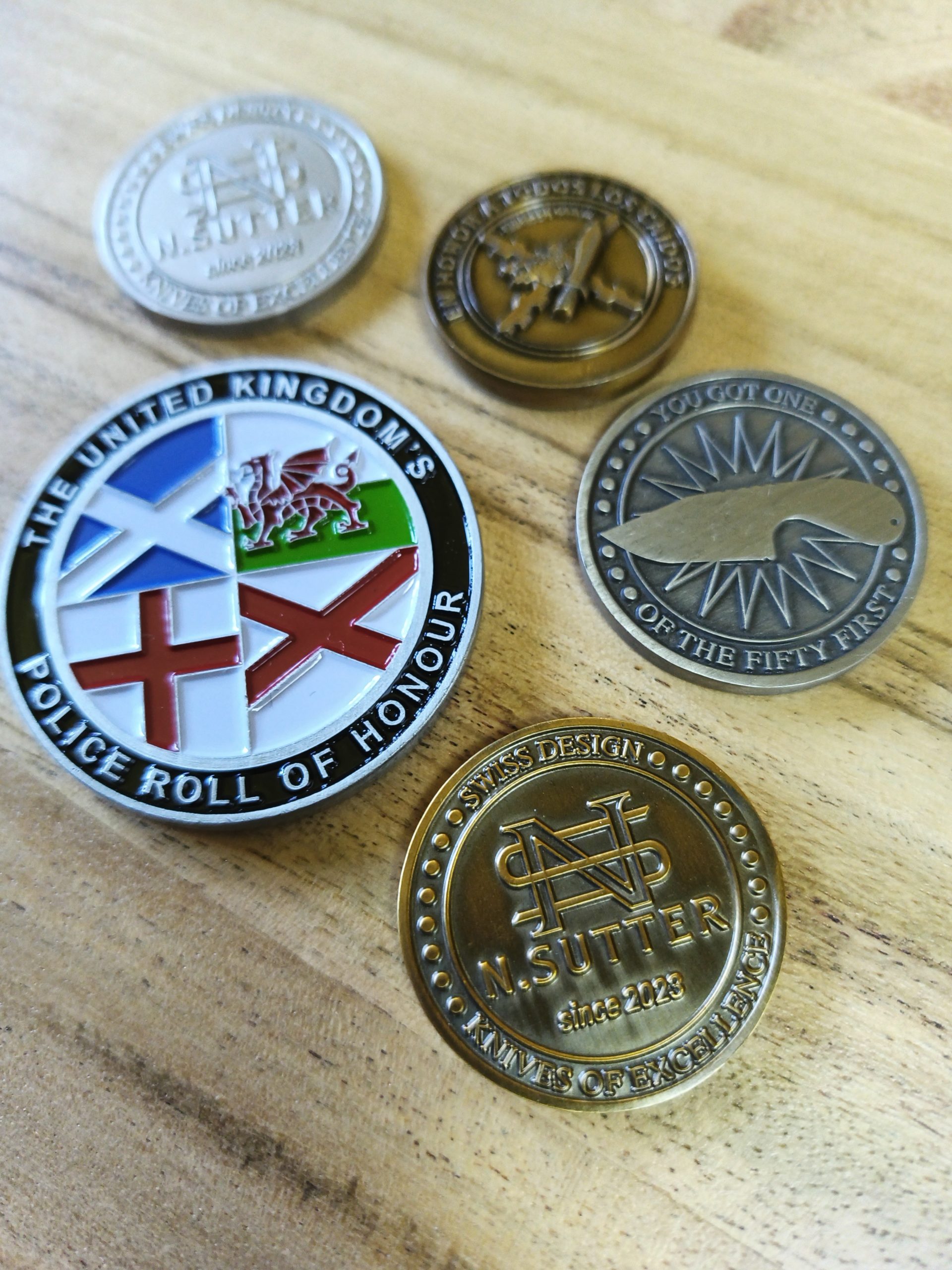 Wir fertigen auch Coins aus verschiedenen Materialien und in verschiedenen Grössen. Mit Schatullen oder Etuis. Alles ist möglich. Kontaktieren Sie uns für weitere Informationen.